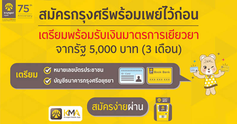 ลงทะเบียนผ่าน 5 ช่องทาง ดังต่อไปนี้ - Krungsri ATM