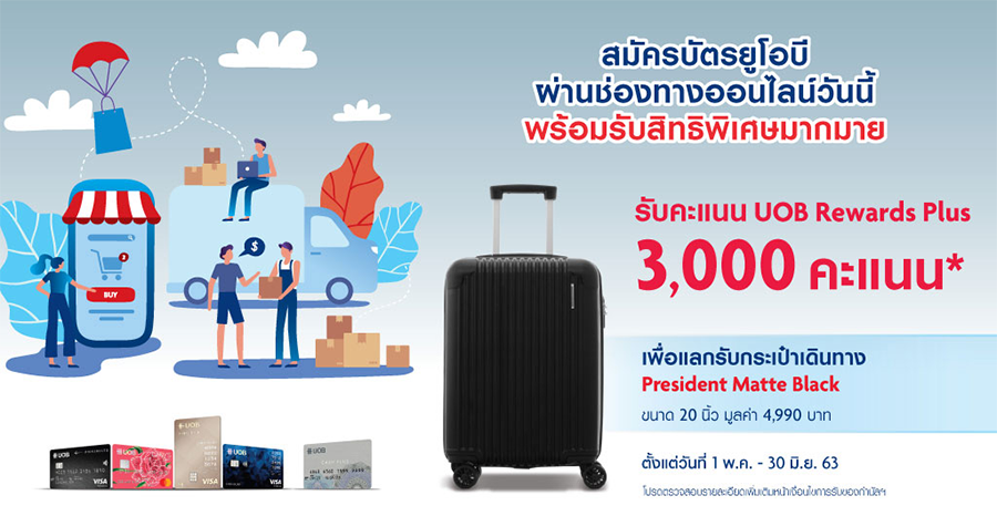 สมัครบัตรเครดิตยูโอบี ผ่านช่องทางออนไลน์ วันนี้! รับคะแนนสะสมเพื่อแลกรับกระเป๋าเดินทางขนาด 20 นิ้ว
