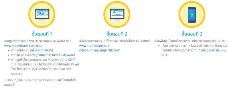 3 ขั้นตอนง่ายๆ เมื่อต้องการโอนเงินต่างประเทศผ่านแอปฯ Krungthai NEXT ในครั้งแรก