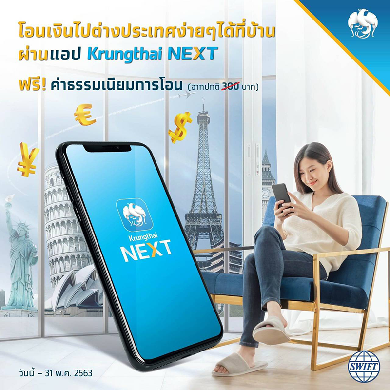 กรุงไทย ชูแคมเปญลดเสี่ยง เลี่ยงโควิด-19 ฟรี!! ค่าธรรมเนียมการโอนเงินไปต่างประเทศ