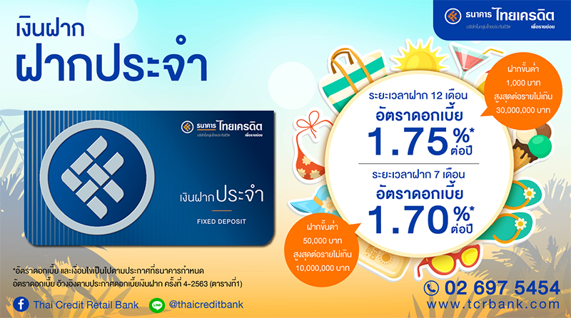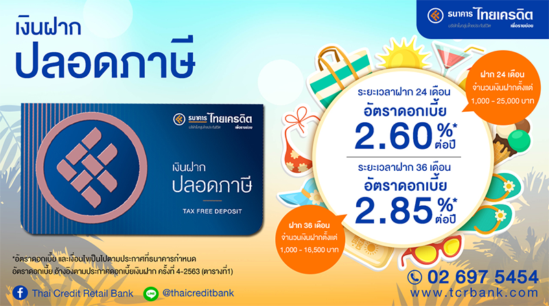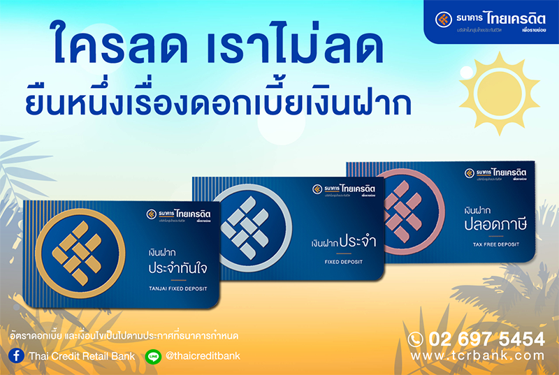 ยืนหนึ่งเรื่องดอกเบี้ยเงินฝาก กับโปรโมชั่นบัญชีเงินฝากไทยเครดิต...ใครลด เราไม่ลด ยืนหนึ่งเรื่องดอกเบี้ยเงินฝาก สูงสุดถึง 2.85% ต่อปี*