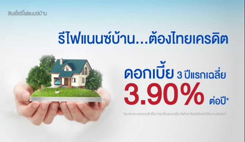 รีไฟแนนซ์บ้าน...ต้องไทยเครดิต รับดอกเบี้ย 3 ปีแรกเฉลี่ย 3.90% ต่อปี