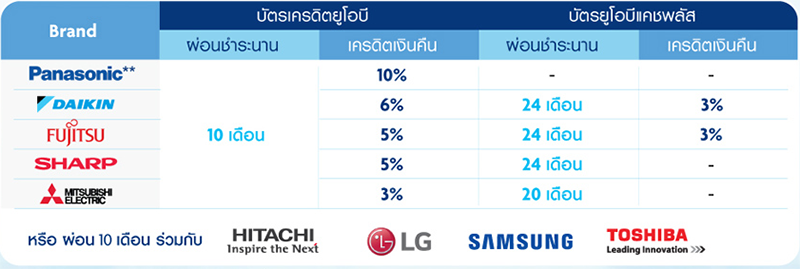 แบ่งชำระเครื่องปรับอากาศ - แบ่งชำระสูงสุด 10 เดือน สำหรับบัตรเครดิตทุกประเภท