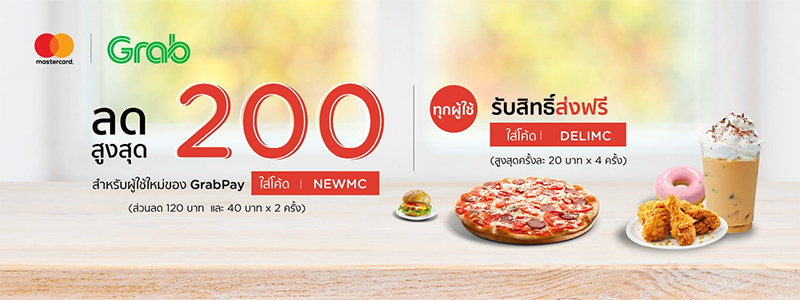 - รหัสโปรโมชั่น NEWMC สามารถใช้ได้เฉพาะผู้ที่ไม่เคยชำระผ่าน GrabPay บน Grab และทำการชำระด้วยบัตรเครดิต Mastercard เป็นครั้งแรก
