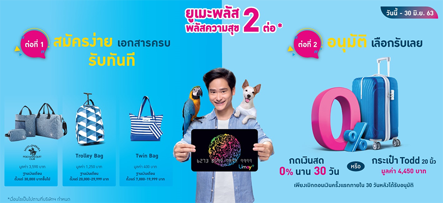 ยูเมะพลัส พลัสความสุข 2 ต่อ สำหรับลูกค้าที่สมัครบัตรกดเงินสดยูเมะพลัส