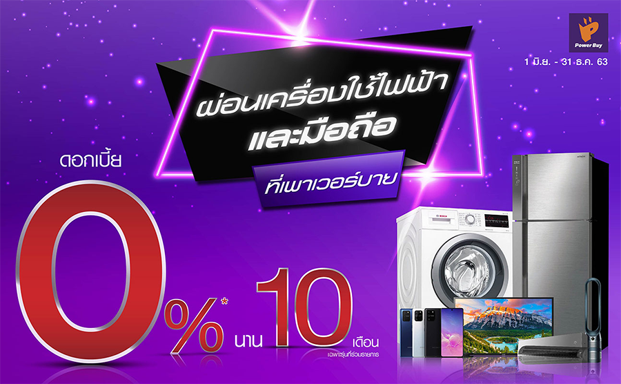 - เมื่อผ่อนสินค้ายอดสินเชื่อตั้งแต่ 3,000 บาทขึ้นไป ต่อเซลล์สลิป ผ่านวงเงินสินเชื่อยัวร์แคช หรือเมื่อผ่อนสินค้ายอดสินเชื่อตั้งแต่ 5,000 บาทขึ้นไป ผ่านวงเงินบัตรเครดิต รับสิทธิ์อัตราดอกเบี้ย 0% ต่อเดือน ระยะเวลาผ่อน 10 เดือน
