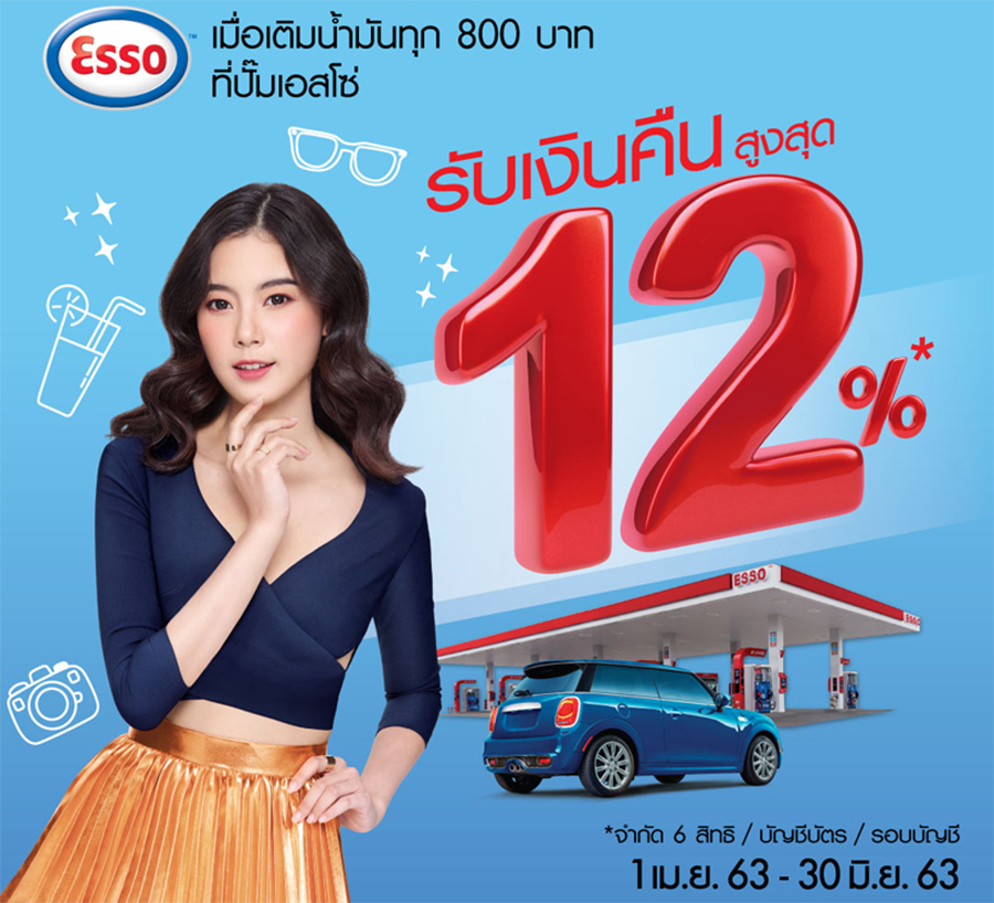 รับเงินคืนสูงสุด 12% เมื่อเติมน้ำมันครบทุก 800 บาท ผ่านบัตรเครดิตธนาคารกรุงเทพ @ เอสโซ่