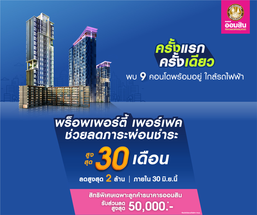 โปรฯ พิเศษจาก พร็อพเพอร์ตี้ เพอร์เฟค ช่วยลดภาระผ่อนชำระ สูงสุด 30 เดือน เฉพาะลูกค้าธนาคารออมสิน