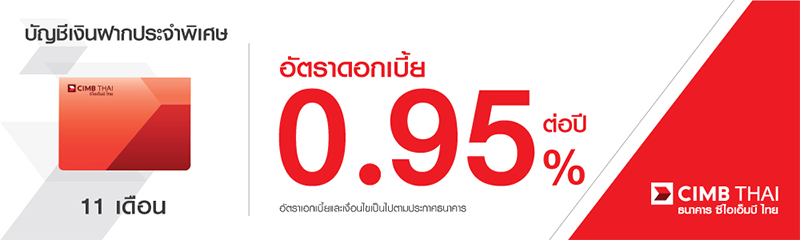 โปรโมชั่นเงินฝากดอกเบี้ยสูง กับ บัญชีเงินฝากประจำพิเศษ 5, 11 เดือน จากธนาคารซีไอเอ็มบี ไทย