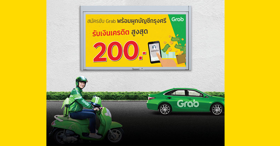 รับเงินเครดิต สูงสุด 200 บาท เมื่อลงทะเบียนสมัครขับ Grab พร้อมผูกบัญชีกรุงศรี สำเร็จ*