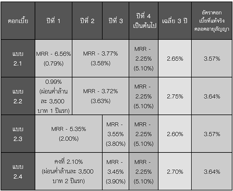 อัตราดอกเบี้ยแบบที่ 2 สำหรับผู้กู้รายได้ตั้งแต่ 20,000 บาทต่อเดือนขึ้นไป