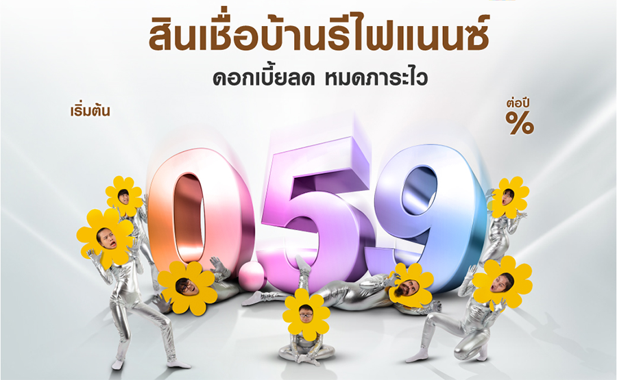สินเชื่อบ้านรีไฟแนนซ์ ดอกเบี้ยต่ำเริ่มต้น 0.59% ต่อปี กู้ได้ 100% ผ่อนนานสูงสุด 35 ปี วันนี้-30 กันยายน 63
