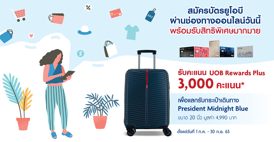 สมัครบัตรเครดิตยูโอบี ผ่านช่องทางออนไลน์ วันนี้! รับคะแนนสะสมเพื่อแลกรับกระเป๋าเดินทางขนาด 20 นิ้ว
