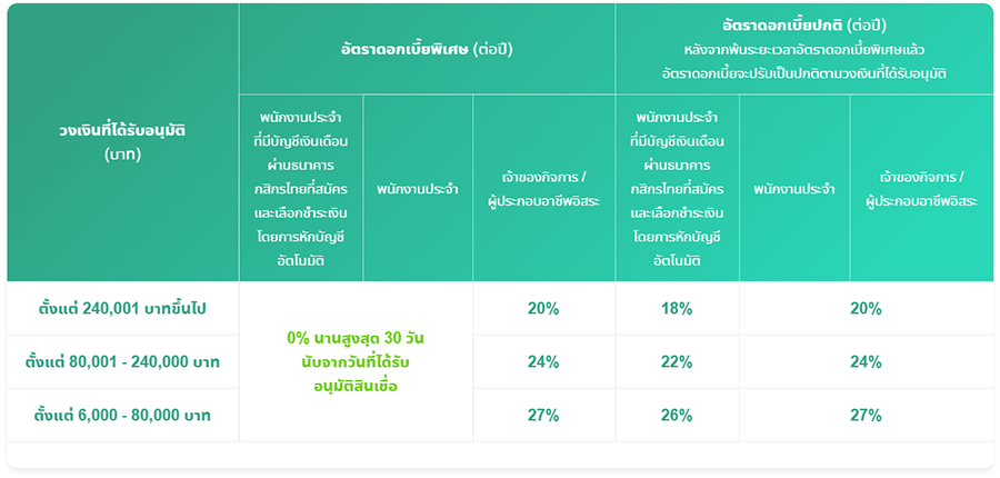 สิทธิพิเศษสำหรับมนุษย์เงินเดือนเท่านั้น!! ฟรีดอกเบี้ย 0% นาน 30 วัน หลังจากนั้นดอกเบี้ยก็แค่หมื่นละ 5 บาท/วัน สนใจสมัครเลย!