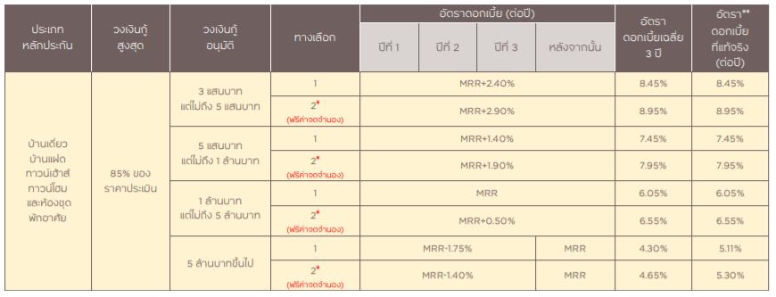 - สบายๆ กับการผ่อนชำระนานสูงสุด 30 ปี (ระยะเวลาผ่อนชำระรวมกับอายุผู้กู้แล้วต้องไม่เกิน 65 ปี)
