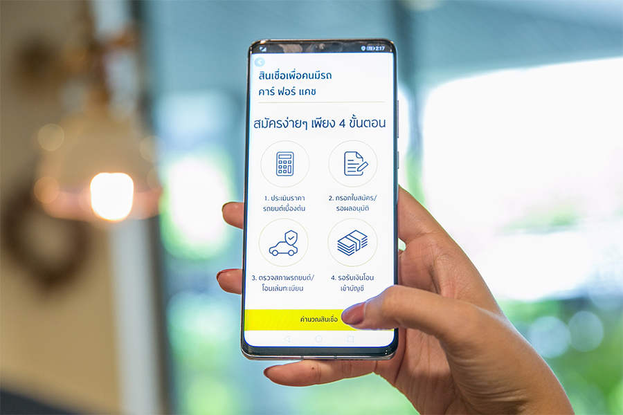 *สำหรับลูกค้าธนาคารกรุงศรีฯ ที่ใช้บริการแอปพลิเคชัน KMA สามารถขอสินเชื่อเพื่อคนมีรถ "คาร์ ฟอร์ แคช" แบบโอนเล่มทะเบียนผ่านแอปพลิเคชันได้ทันที