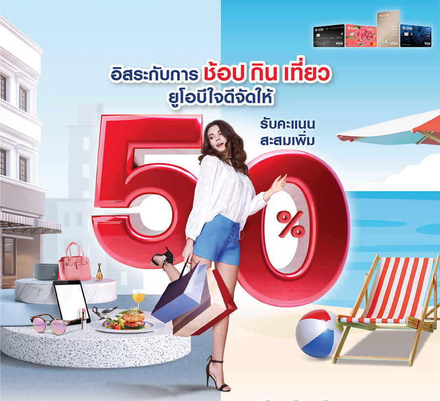 อิสระกับ ช้อป กิน เที่ยว บัตรเครดิตยูโอบีใจดีจัดให้ รับคะแนนสะสมเพิ่ม 50%