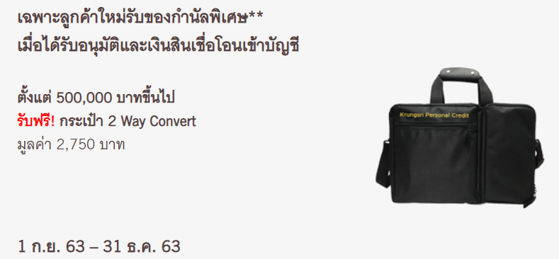 สินเชื่อหมุนเวียนส่วนบุคคล ดอกเบี้ยต่ำสุด 9.99% ต่อปี สมัครวันนี้ฟรี! กระเป๋า 2 Way Convert มูลค่า 2,750.-