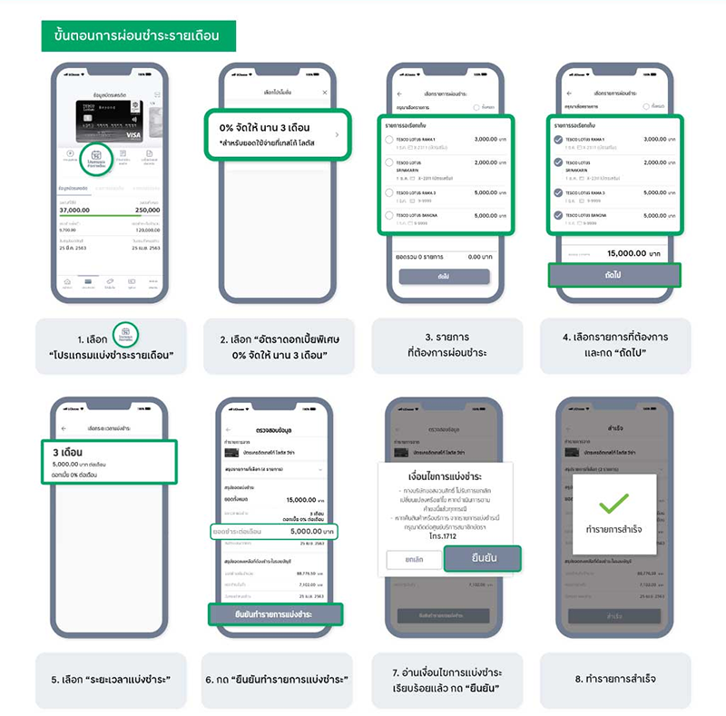- การอนุมัติการทำรายการแบ่งผ่อนชำระรายเดือนขึ้นอยู่กับการพิจารณาและดุลพินิจของบริษัทฯ