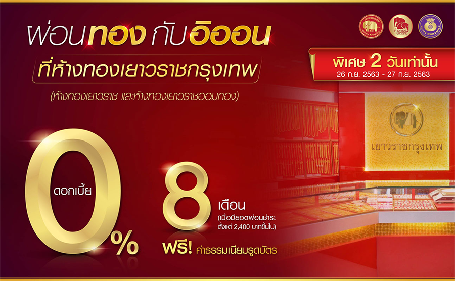 ผ่อนทองกับอิออน 0% 8 เดือน ที่ห้างทองเยาวราช กรุงเทพ