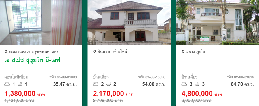- สำหรับทรัพย์ที่มีราคาพิเศษประกาศอยู่บนเว็บไซต์ ธนาคารขอสงวนสิทธิ์อนุมัติขายให้กับลูกค้าที่ทำการเสนอซื้อไม่ต่ำกว่าราคาพิเศษ และวางเงินประกันการเสนอซื้อ 1% พร้อมส่งเอกสารหลักฐานการเสนอซื้อเป็นลำดับแรก