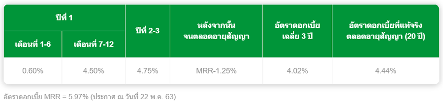 เงื่อนไข - อัตราดอกเบี้ย (แบบลดต้นลดดอก) และเงื่อนไขพิเศษสำหรับการยื่นกู้ระหว่าง 1 ต.ค. 63 - 31 ธ.ค. 63