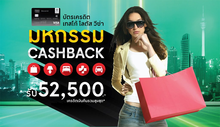 มหกรรม Cash Back รับเครดิตเงินคืนรวมสูงสุด 52,500 บาท* กับบัตรเครดิตเทสโก้ โลตัส วีซ่า