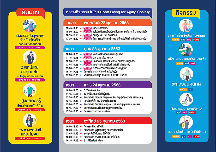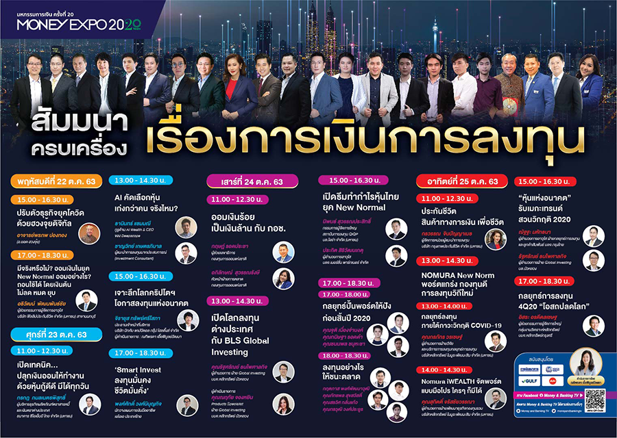 ภายในงานยังจัดให้มีการสัมมนาด้านการเงิน การลงทุน รูปแบบออนไลน์ ในหัวข้อ "กลยุทธ์ปั้นพอร์ตให้ปังก่อนสิ้นปี 2020, ลงทุนอย่างไรให้ชนะตลาด, NOMURA New Norm พอร์ตแกร่ง กองทุนดี การลงทุนวิถีใหม่, กลยุทธ์ลงทุนภายใต้ภาวะวิกฤติ COVID-19, เจาะลึกโลกคริปโตฯ โอกาสลงทุนแห่งอนาคต, กลยุทธ์การลงทุน : 4Q20 "โอสถปลดโลก", เปิดโลกลงทุนต่างประเทศกับ BLS Global Investing, ปรับตัวธุรกิจยุคโควิดด้วยฮวงจุ้ยดิจิทัล, มีจริงหรือไม่? ออมเงินในยุค New Normal, AI คัดเลือกหุ้นเก่งกว่าคน จริงไหม?, ออมเงินร้อยเป็นเงินล้านกับ กอช. เป็นต้น"
