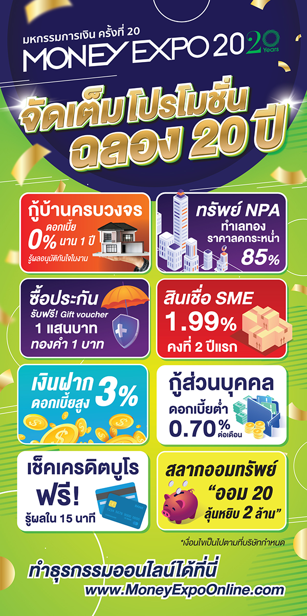 มหกรรมการเงิน ครั้งที่ 20 Money Expo 2020 พร้อมเสิร์ฟโปรโมชั่นดีที่สุดแห่งปี ฉลองครบรอบ 20 ปี