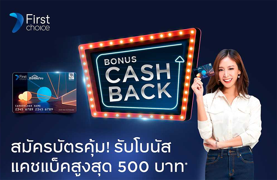 สมัครบัตรโฮมโปร เฟิร์สช้อยส์ วันนี้ รับโบนัสแคชแบ็ค สูงสุด 500 บาท ไม่มีค่าธรรมเนียมรายปีตลอดชีพ