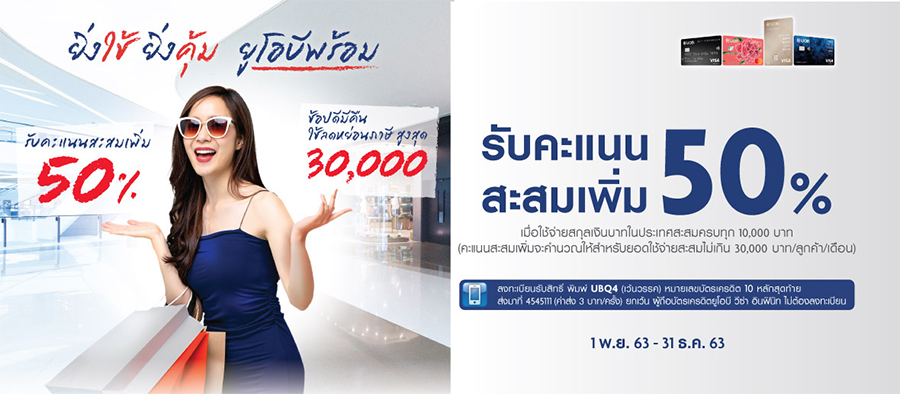 ยิ่งใช้ ยิ่งคุ้ม ยูโอบีพร้อม รับคะแนนสะสมเพิ่ม 50%