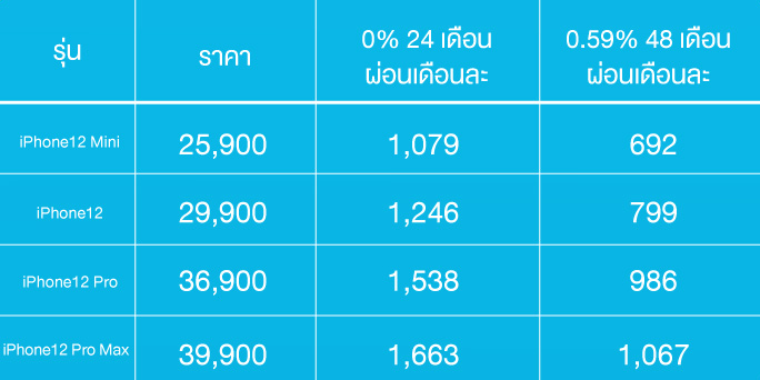 เลือก iPhone 12 ที่เหมาะกับคุณ กับบัตรกดเงินสดยูเมะพลัส ผ่อน 0% นาน 24 เดือน หรือดอกเบี้ยพิเศษ 0.59% นานสุด 48 เดือน (อัตราดอกเบี้ยและค่าธรรมเนียมการใช้วงเงิน 12.96% ต่อปี)