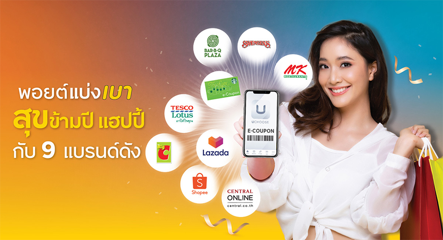 สิทธิพิเศษสำหรับลูกค้า บัตรเครดิต กรุงศรี, บัตรเครดิต โฮมโปร วีซ่า แพลทินัม, บัตรเครดิต เอไอเอ วีซ่า และบัตรเครดิต สยาม ทาคาชิมายะ #พอยต์แบ่งเบา สุขข้ามปี แฮปปี้ กับ 9 แบรนด์ดัง Save Points สูงสุด 50%* แลกรับอีคูปองส่วนลด เริ่มต้นเพียง 499 พอยต์ แลกง่ายๆ ผ่านแอป UChoose