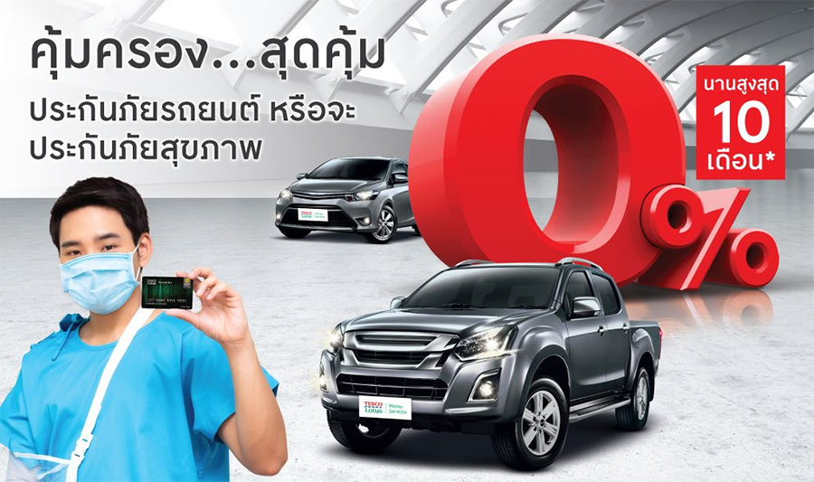 คุ้มครอง...สุดคุ้ม ประกันภัยรถยนต์ หรือจะประกันภัยสุขภาพ ผ่อน 0% นานสูงสุด 10 เดือน ผ่านบัตรสินเชื่อเทสโก้ โลตัส พรีเมียร์