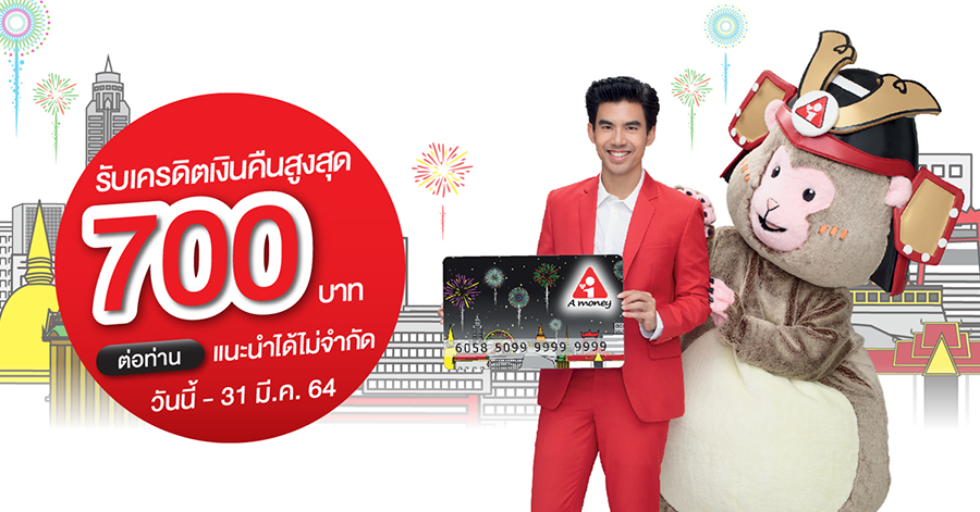รับเครดิตเงินคืนสูงสุด 700 บาทต่อท่าน เพียงแนะนำเพื่อนสมัครบัตรกดเงินสด A money