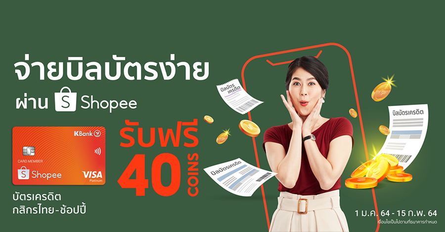 รับฟรี 40 Shopee COINS เมื่อจ่ายบิลบัตรเครดิตกสิกรไทย-ช้อปปี้