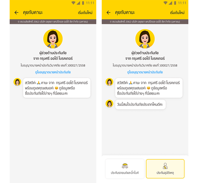 ประสบการณ์ใหม่ในการซื้อประกันอุบัติเหตุส่วนบุคคล โดย "คานะ" ของกรุงศรี ออโต้ โบรคเกอร์ บน GO Application by Krungsri Auto พร้อมให้ความช่วยเหลือ และลดความยุ่งยากในการเลือกซื้อประกันภัย ด้วยการสอบถามข้อมูลในแต่ละขั้นตอน ลูกค้าเพียงพิมพ์ข้อความพูดคุย "คานะ" จะช่วยสรุปข้อมูลเปรียบเทียบความคุ้มครองและค่าเบี้ยประกันไว้ในหน้าเดียว และอุ่นใจยิ่งขึ้นด้วยการชำระเงินแบบไร้เงินสดได้บนแอปพลิเคชัน ไม่ต้องส่งเอกสารเพิ่มเติม และเลือกรับกรมธรรม์ผ่านช่องทางอีเมลได้ทันที
