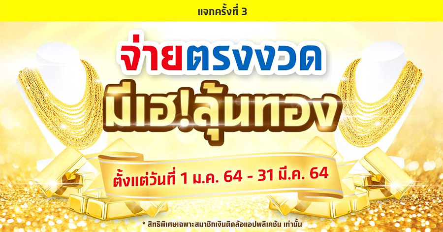 ชำระเงินตรง 3 งวด กับแอป "เงินติดล้อ" มีเฮ! ลุ้นทอง ตั้งแต่วันนี้ - 31 มี.ค. 64