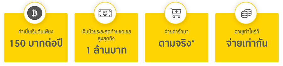 - ผลประโยชน์และความคุ้มครองเป็นไปตามข้อกำหนดและเงื่อนไขในกรมธรรม์ประกันภัย