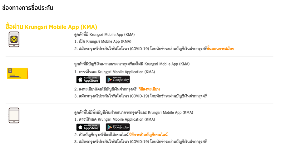 ขั้นตอนการสมัครประกันไวรัสโคโรนา โควิด-19 (COVID-19) ผ่าน Krungsri Mobile App (KMA)