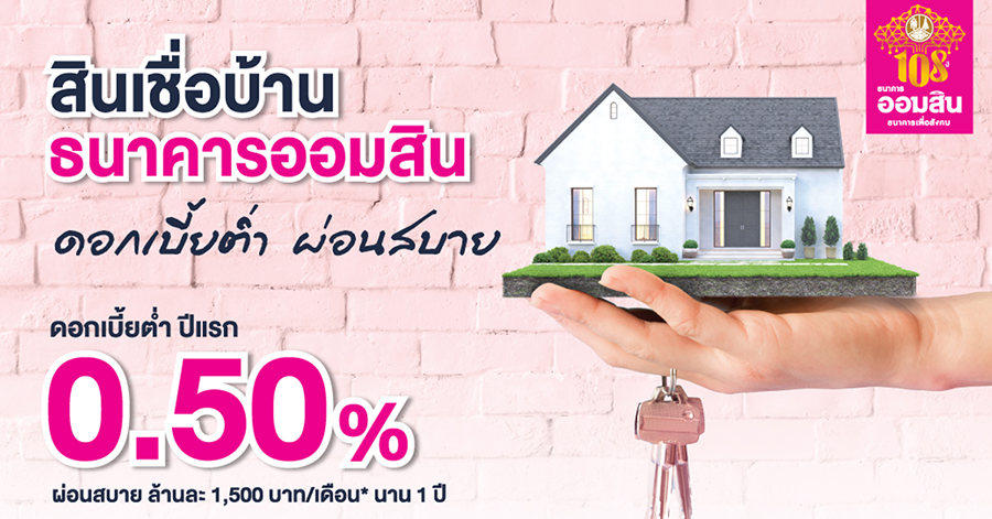 สินเชื่อบ้านธนาคารออมสิน ดอกเบี้ยต่ำ ผ่อนสบาย ดอกเบี้ยต่ำ ปีแรก 0.50% ต่อปี