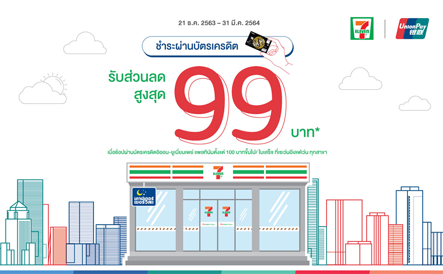 รับส่วนลดทันทีสูงสุด 99 บาท เมื่อช้อปผ่านบัตรเครดิตอิออน-ยูเนี่ยนเพย์แพลทินัม ที่เซเว่นอีเลฟเว่นทุกสาขา