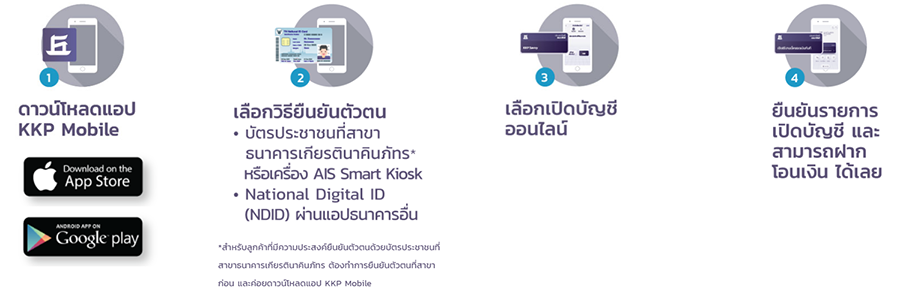 - เปิดง่ายไม่ต้องไปสาขา แค่เปิดบัญชีออนไลน์ผ่าน KKP Mobile Application