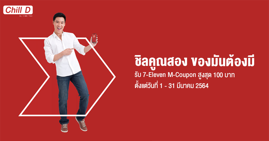 ชิลคูณสอง ของมันต้องมี รับ M-Coupon 7-Eleven มูลค่าสูงสุด 100 บาท เมื่อเปิด