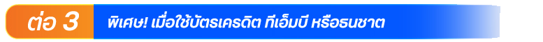 - ลูกค้าบัตรเครดิตธนชาต และบัตรเครดิตนครหลวงไทย : ลงทะเบียนพิมพ์ TMX ตามด้วยหมายเลขบัตรเครดิต 16 หลัก ส่งมาที่ 4712066 (ข้อความละ 3 บาท)