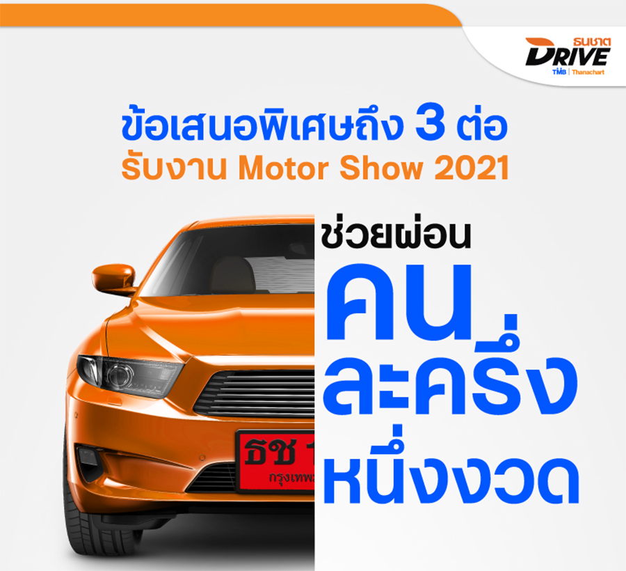ช่วยผ่อนคนละครึ่งหนึ่งงวด พร้อมรับข้อเสนอพิเศษถึง 3 ต่อ ในงาน Motor Show 2021 กับ ธนชาตDRIVE