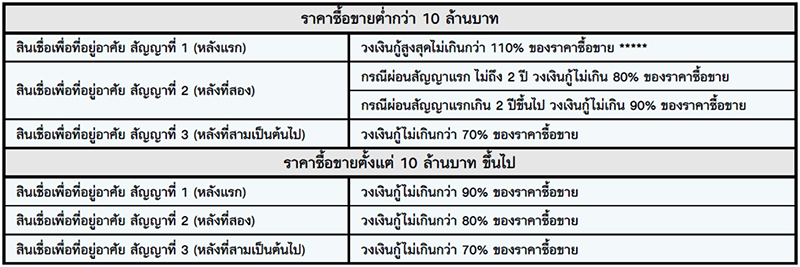 - ราคาซื้อขายของหลักประกันต้องมีราคา (แนวราบ) ไม่น้อยกว่า 2.00 ล้านบาท , (แนวสูง) ไม่น้อยกว่า 2.50 ล้านบาท