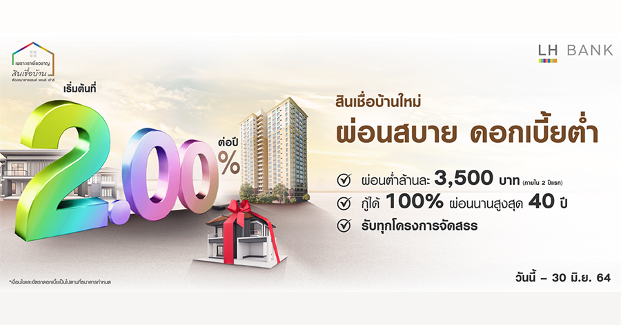 โฮมโลน โดนใจ สินเชื่อบ้านดอกเบี้ยต่ำ 2.00% ผ่อนสบาย จาก LH Bank
