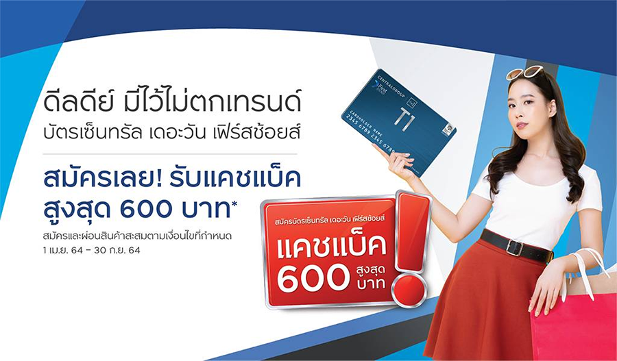 ดีลดีย์ มีไว้ไม่ตกเทรนด์ "บัตรเซ็นทรัล เดอะวัน เฟิร์สช้อยส์" สมัครวันนี้! รับแคชแบ็ค สูงสุด 600 บาท