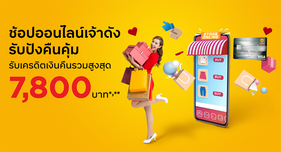 สิทธิพิเศษสำหรับลูกค้าบัตรเครดิต กรุงศรี ช้อปออนไลน์เจ้าดัง รับเครดิตเงินคืนรวมสูงสุด 7,800 บาท